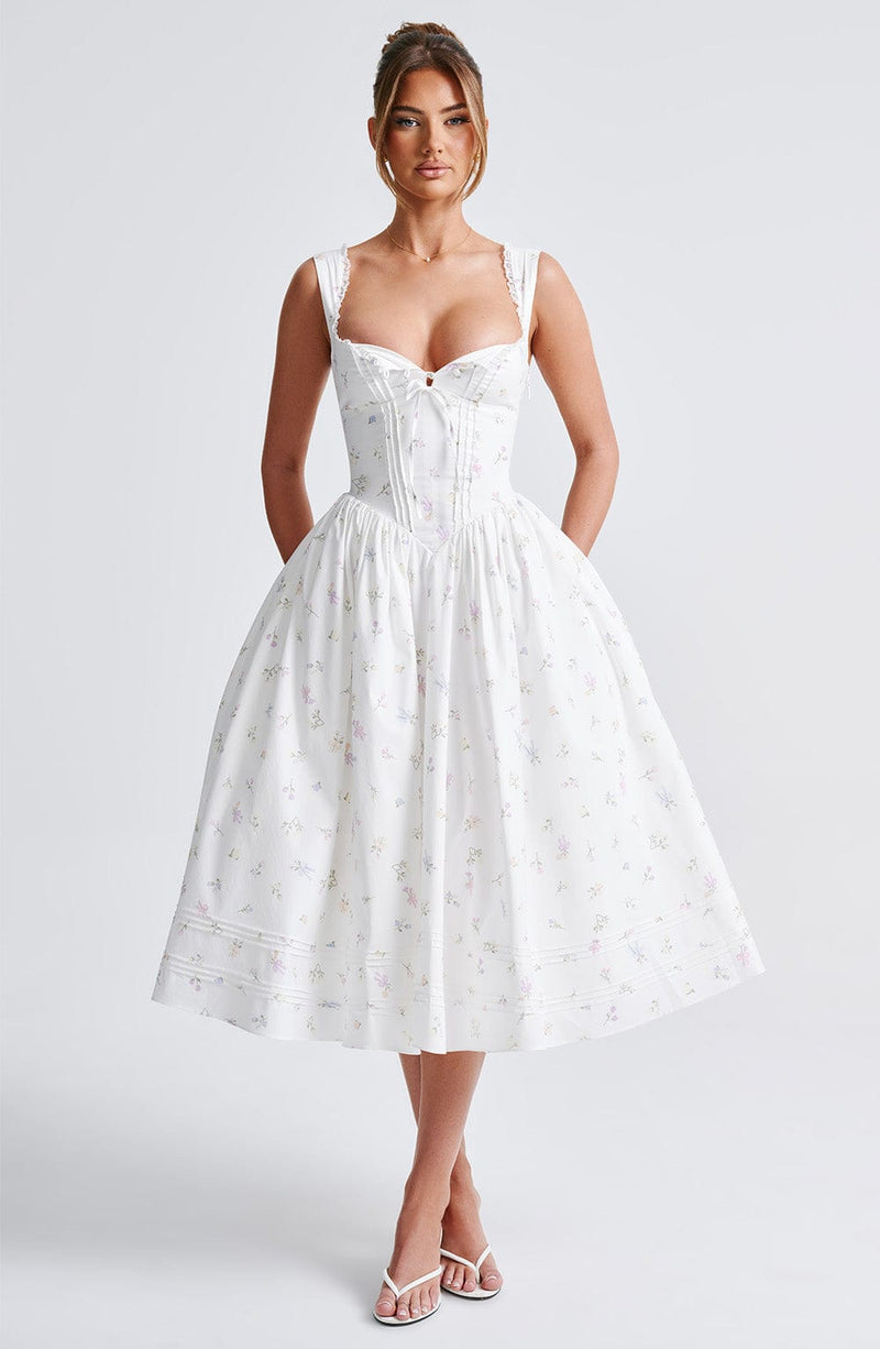 Marlena Midi Dress - White Multi Floral Print