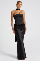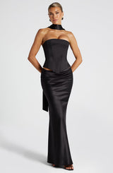 Add a touch of elegance to any outfit with the Sybil Scarf in Black. Crafted from soft flowing satin, this scarf drapes beautifully around the neck to elevate any look.