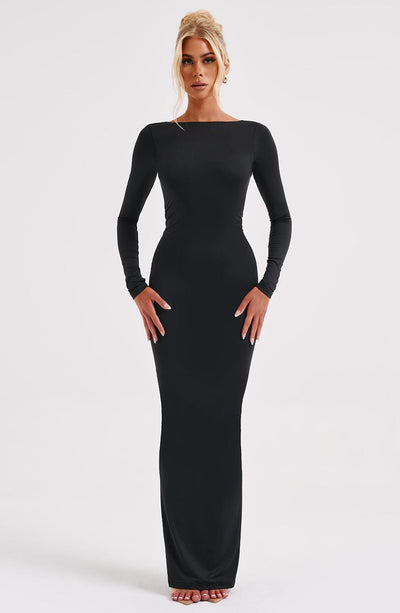 If you're searching for an iconic dress for party season, meet Rameesha. Designed in house, this timeless maxi is made in our signature double layered fabric for a cinched-from-within fit. The look is complete with an elegant yet modern high neckline and showstopping plunge back with ruched detailing over the rear. Make sure the spotlight's on you wearing this, glossy lips and pointed mule heels.