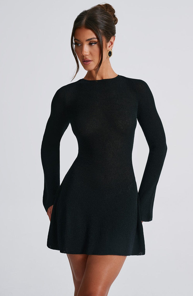 Vacay on the horizon? Make sure you pack Adalee, our brand new mini knit dress that features a boat neckline and sexy open back with self tie detail. With flared sleeves, A-line skirt and a fitted bust and waist, this design has a semi sheer finish. Best paired loose waves and a summer glow for ultimate vacay vibes.