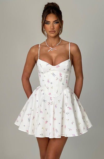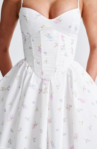 Analeigh is effortlessly dressed up or down, crafted in a lightweight cotton blend with boned corset and sweetheart neckline. With a lace up back for a super cinched waist, the skirt is full and the straps are adjustable for your perfect fit.