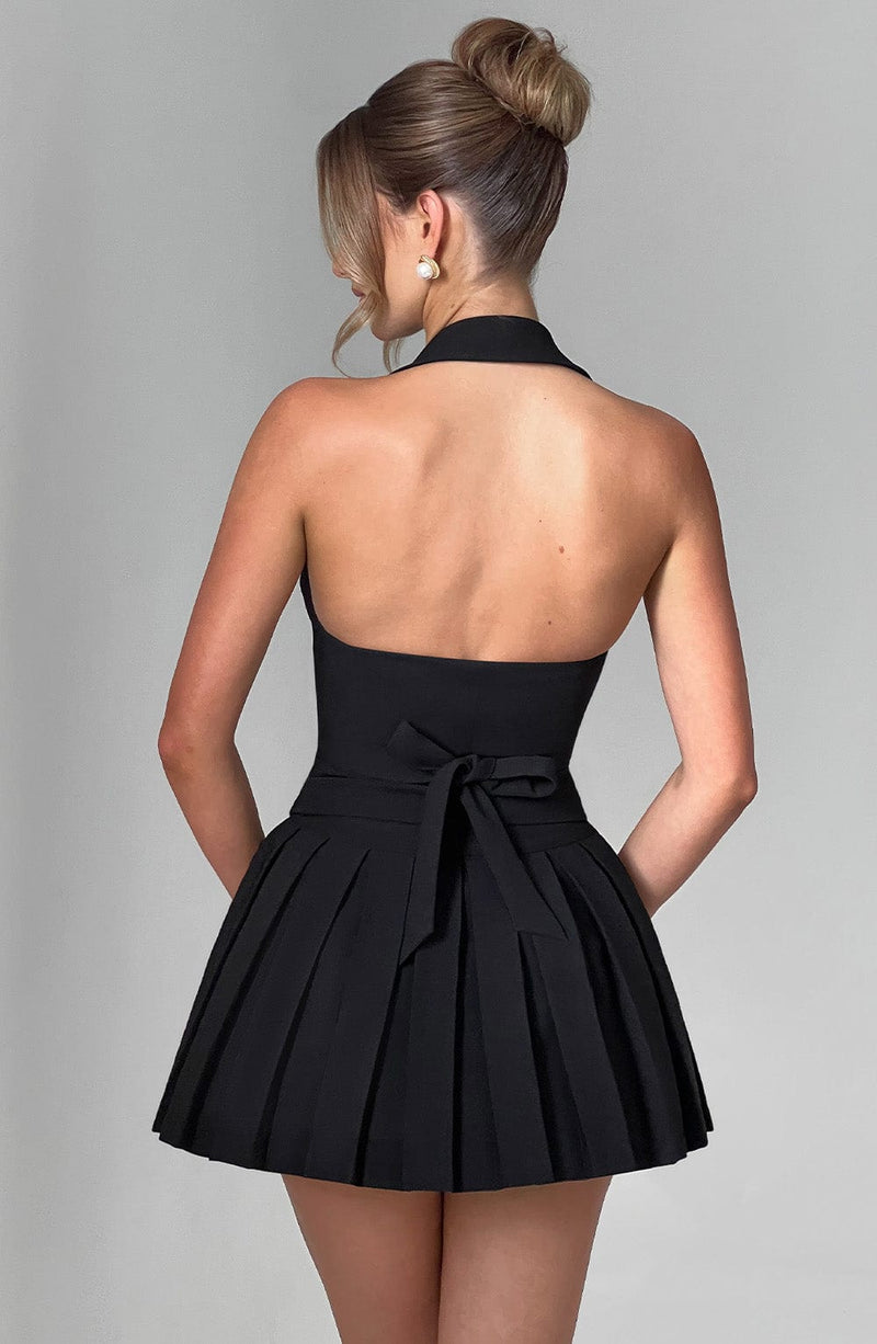 Introducing tailored perfection ready for the new season. Phillippa is made in our premium crepe fabric with a notched lapel collar, halter neckline, button closure to the centre front and ties on the back. It's complete with a shaped hem. Pair with the Gretchen mini for the chicest matching look.