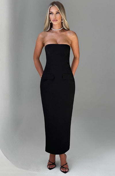 This elevated midaxi has a body-hugging, tailored fit, made with panelled seams and a strapless neckline. A premium, sophisticated design that'll work well for events and special occasions, this dress is finished with flap pockets, pencil shaped skirt and a split to the reverse. Styles well with everything, from chic pointed sandals to heeled boots and more.