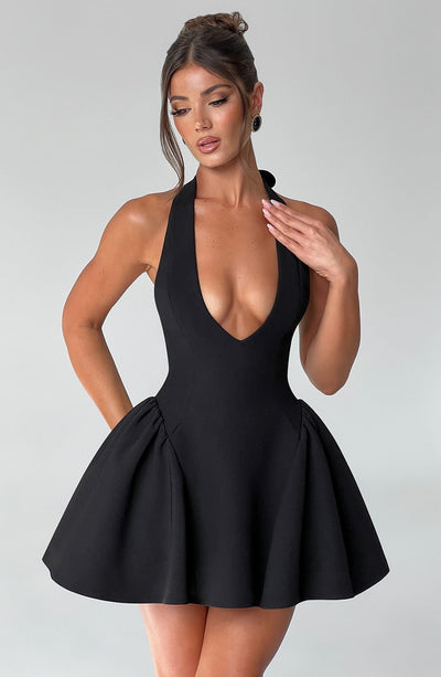 Radiate in the Joanne playsuit, a flirty design cut from our luxury crepe fabric. With a plunge, halter neckline, princess seams on the body and built in shorts, the skirt overlay is made with tulle and gathered details for a more dramatic, voluminous look. Style her with soft waved hair and a mini bag.