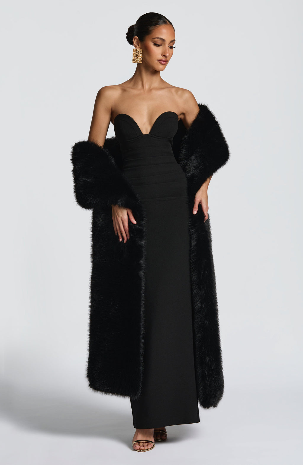 Elevate your ensemble with the Lulu Shawl in Black, crafted from luxurious, plush faux fur. This elegant accessory adds a bold, sophisticated touch when draped over your favourite outfit, blending timeless style with modern flair.